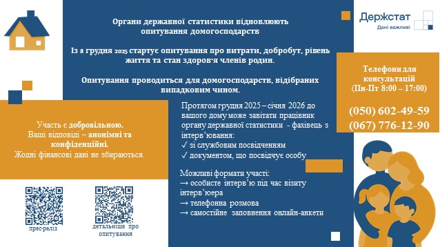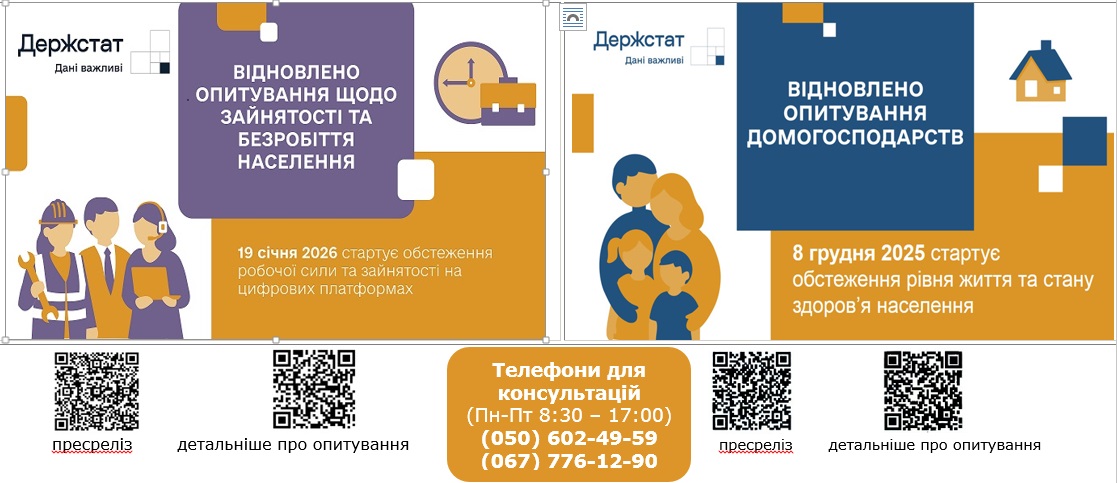 з питань організації збирання даних статистичних спостережень - (067) 419 55 48, (050) 832 12 30